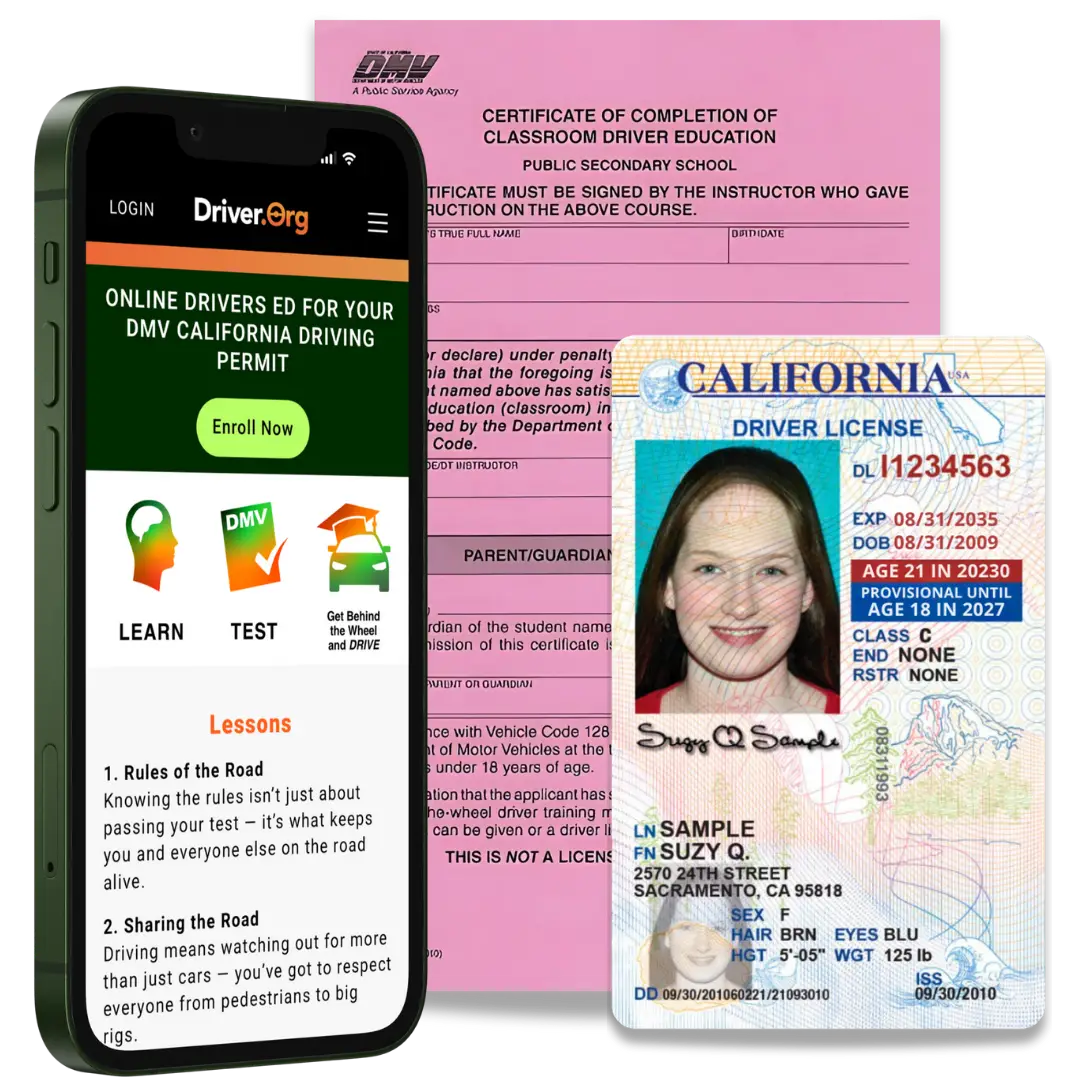 Online classes have the additional benefit of increasing parental involvement in their teen’s learning process, which has been shown to be an important factor in teen safety. Experts will tell you that the biggest advantage of teen online driver education is that you, as parents, can be involved and see what your teen is learning. Driver.org has enrolled and passed over 50,000 students throughout California. We offer this important education today while your student’s local high school may make them wait or not offer it at all. Your teen can begin studying immediately! You will enjoy that this is a Go-at-your-own-Pace program with No Timers and No Classrooms. Earning a provisional permit is the step in the graduated drivers license process.